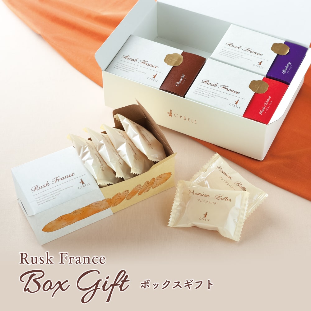 プレミアムバター・ブルーベリー・ショコラ・メープル+くるみ、4種類のスイーツラスクの詰合せです。