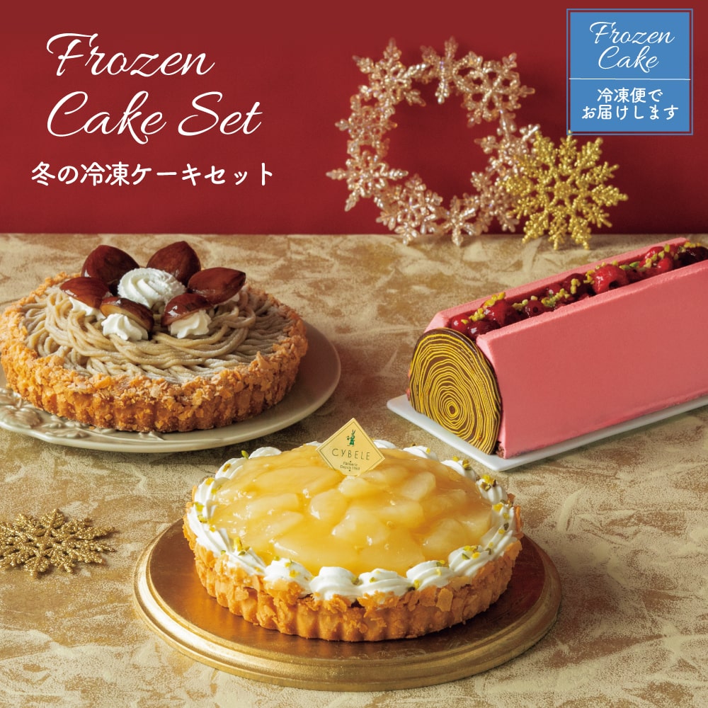 冬限定のお得な冷凍ケーキのセット!冬限定の「和栗のモンブラン」「ラ・フランスタルト」「ビッシュ・ド・ショコラ ルージュ」、3種のケーキのセットです。通常価格 税込11,250円のところ、約11%OFFのお得な価格+送料無料の9,980円でお届けします♪ ※セットの詰め替えはできません。※冷凍でお届けします。
