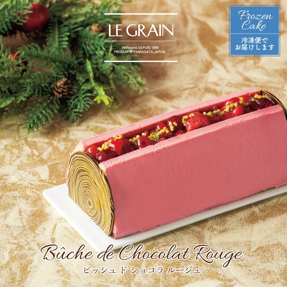 ピンク色のチョコレートムースに宝石のような真っ赤な果実をのせた華やかな冬季限定ケーキ