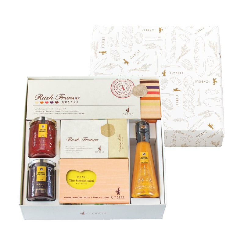 山形にある「シベール」と「セゾンファクトリー」がコラボしたギフト。サラダはもちろん、いろいろなお料理に使えるドレッシングと果実感たっぷりのジャム、朝食にも便利なラスクを詰合せました。食卓が華やぐバラエティ豊かなセットです。