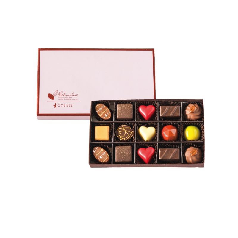 - 15個(グランマニエ・ヘーゼル・フレーズ・グリオット・カフェ 各2個、ブロンド・ブラン・パレ・ドール・マロン・ノワゼット・ベルガモット 各1個))