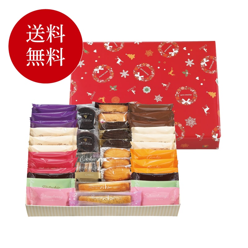 - つぶつぶ苺・ピスタチオ・ラスクル・ 1枚入×各2袋、プレミアムバター 2枚入×6袋、ブルーベリー・ショコラ・メープル+くるみ・ガーリック 2枚入×各3袋、クッキー六重奏(アーモンド・アーモンドショコラ・クルミショコラ・マカダミア・米・ヘーゼルナッツ) 各1枚、仕合わせのバトン(プレーン・キャラメル)各2本・(紅茶・ショコラ)各1本、マドレーヌ・マドレーヌショコラ 各3個、プレミアムフィナンシェ 2個、焼チョコレート 2個