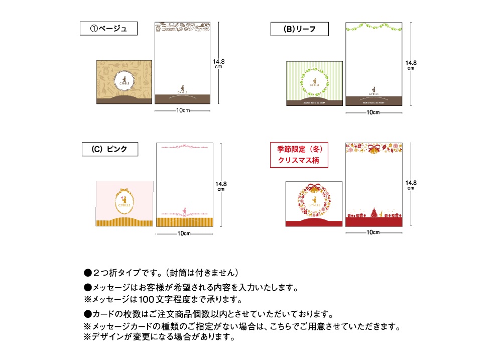 オリジナルのメッセージカードを複数ご用意しております。お好きなカードをお選びください。